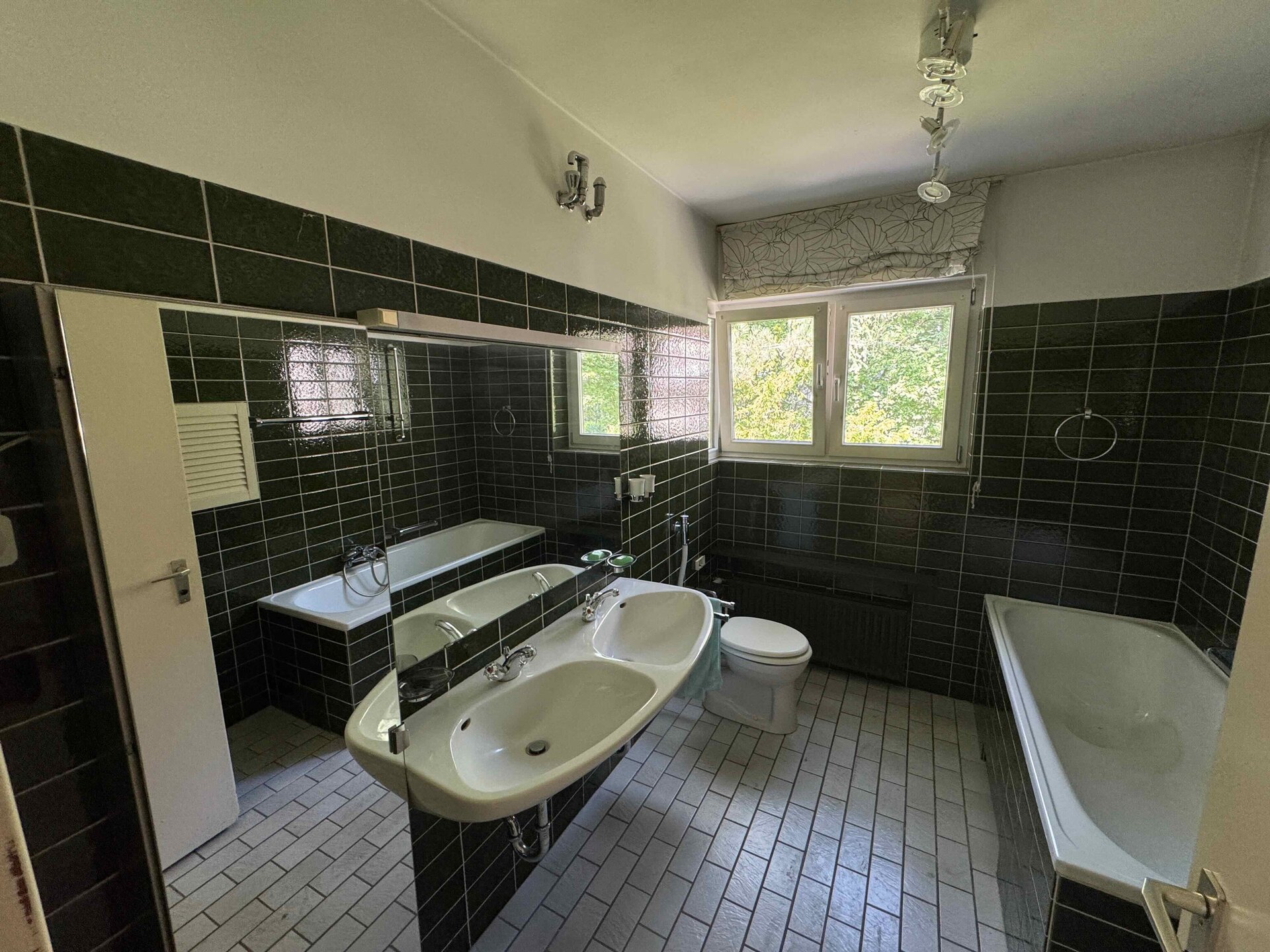 Im Erdgeschoss befindet sich neben dem großzügigen Wohnbereich mit Zugang zur Terrasse und in den Garten ein separates Gäste-WC. Das Obergeschoss verfügt über drei Zimmer sowie ein Tageslichtbad mit Wanne. Eine zusätzliche Besonderheit ist die sonnige Dachterrasse, die zum Entspannen einlädt und einen Blick ins Grüne bietet.